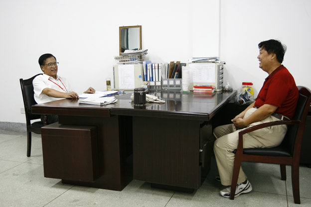 专家组组长尹鸿钧教授对我校教职工进行个别访谈