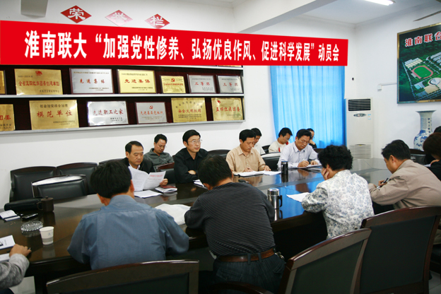 5月25日下午,全校“加强党性修养、弘扬优良作风、促进科学发展”主题教育活动动员大会在办公楼会议室召开。会议传达了全市“加强党性修养、弘扬优良作风、促进科学发展”主题教育活动动员大会精神,并从指导思想、目标要求、主要原则、主要内容和方法步骤、组织领导等方面,对我校开展主题教育活动进行了全面部署。校党委书记吴淮建到会并提出明确要求。吴书记强调指出:开展主题教育活动一要精心组织。各支部要根据学校党委的安排认真开展活动,形成领导干部率先垂范,广大党员主动参与的局面,确保教育时间、内容、步骤和人员落实,确保教育活动取得实效。二要强化督查。学校教育活动领导小组办公室要加强对教育活动的督促检查,重点加强对每个阶段和关键环节的督察,杜绝不扎实、不深入、走过场的现象,推动教育活动扎实深入开展。三要抓好宣传。要利用校园网络、宣传栏、简报等形式宣传党员领导干部在党性修养和作风建设方面的先进事迹,及时总结活动中的好经验好做法,营造加强党性修养,切实改进作风,促进科学发展的良好氛围。四要注重实效。要坚决克服麻痹和松懈情绪,增强参与教育活动的自觉性和主动性,坚持从学校实际出发,解决好学校职工群众反映强烈的党风党纪方面存在的突出问题。