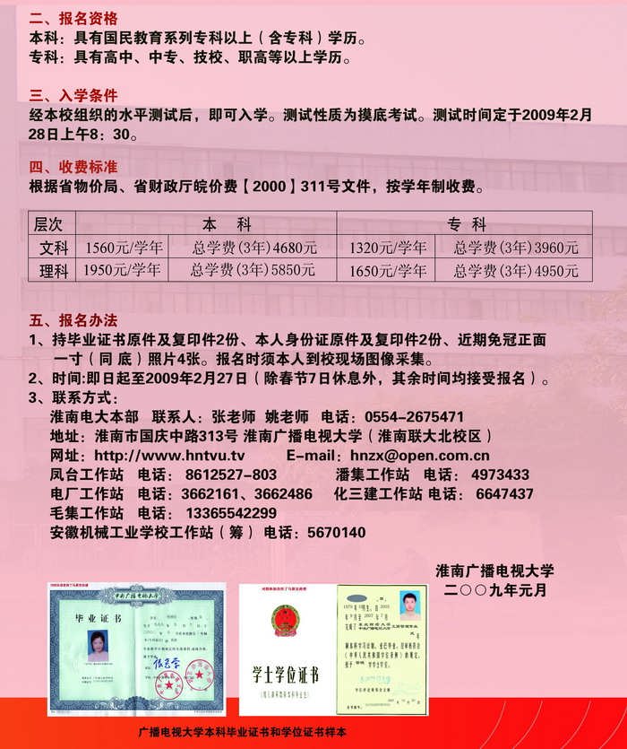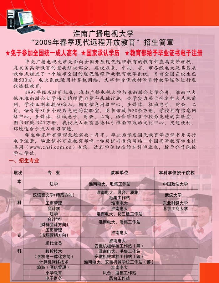 淮南电大“2009年春季现代远程开放教育”招生简章