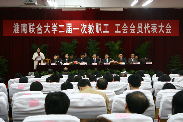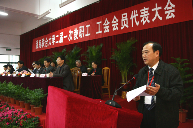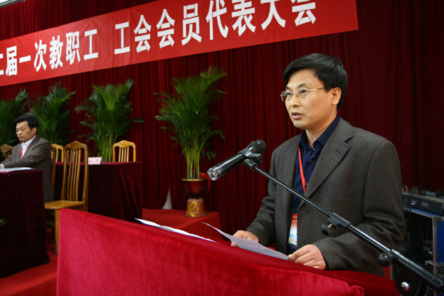 工会主席刘为民向大会做工会工作报告。报告回顾了第一届工会委员会四年来所做的工作:加强组织、制度建设、认真履行职责;坚持和完善“两代会”制度 积极参与学校民主管理和民主监督;围绕学校中心工作,充分发挥工会的桥梁和纽带作用;认真履行教育职能,不断提高教职工的综合素质;发挥工会服务功能, 努力建设和谐校园。刘为民表示,今后工会将继续以邓小平理论和“三个代表”重要思想为指导,全面落实科学发展观,围绕中心、服务大局;以创建学习型组织为载体,以提高教职工整体素质为目标,紧紧围绕教书育人的中心任务,切实加强教师队伍建设、学校民主建设和工会自身建设,积极维护教职工合法权益,充分发挥教职工的积极性和创造性,加大以人为本的师德建设力度,坚持完善教代会制度,带领全体教职工以实事求是的科学态度、艰苦奋斗的工作作风,充分发挥党联系群众的桥梁纽带作用,开拓进取,努力推动学校工会工作的正常开展,为学校又好又快发展作出贡献。