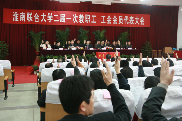党委书记吴淮建做重要讲话,总结了这次会议取得的三个方面的收获:与会代表认真听取和审议了《学校工作报告》、《工会工作报告》、《财务工作报告》等会议文件,进一步明确了学校近几年的奋斗目标和学校今年及未来三年的重点工作任务,进一步理顺了工作思路,统一了思想,达成了共识;会议选举产生了淮南联合大学“两代会”新一届工会委员会、经费审查委员会及工会专门委员会;充分发扬民主,集思广益,献计献策,共谋学校发展大计。同时,吴淮建就如何贯彻落实此次会议精神提出了几点意见:继续解放思想,谋求发展先机;落实会议精神,加强内涵建设;任务落到实处,工作做到细处;坚持和完善“两代会”制度,充分发挥其积极作用。