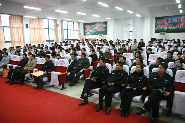 为总结经验,表彰先进,宣传典型,进一步推动我校社会治安综合治理及“平安校园” 建设工作又好又快发展, 3月24日下午,我校2008年度社会治安综合治理暨“平安校园”建设工作表彰大会在报告厅召开。校党委书记吴淮建,校党委副书记、校长赵耀军,纪委书记朱亚非,党委委员、工会主席刘为民出席,大会由副校长耿梦淮主持。各系部负责人、受表彰的单位和个人参加了大会。