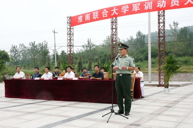 校长赵耀军代表学校党委、行政作军训动员报告。他指出,高校里开展和加强军事训练,不仅是加强军队实战的需要,同时也是高校贯彻国防教育法、兵役法,推进素质教育的重要举措,是同学们大学生活的重要一课。作为新一代富有理想的大学生,进行必要的军事训练,有利于强化同学们的国防意识,加深对军事知识的了解;有利于同学们提高军事基本技能,培养坚忍不拔的意志和吃苦耐劳的精神;有利于同学们增强团结拼搏和整体协作的意识,全面提升意志品格。必要的军事训练,能使青年学生身心上经受洗礼,意志上经受锻炼,为同学们提高自身综合素质奠定一个良好的基础。