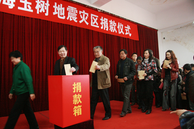 4月14日,青海省玉树县发生了7.1级强烈地震。面对严重的灾情,我校党委高度重视,积极响应市委市政府号召,广大教职工心系灾区、纷纷以不同的方式表达为灾区人民奉献爱心的强烈愿望。4月22日下午,按照校党委部署,我校在报告厅举行了“向青海玉树地震灾区捐款仪式”,向灾区群众伸出援助之手,以表达对灾区人民的一片深情和爱心。校党委书记万继军、校长赵耀军、纪委书记朱亚非、副校长尚文及各系部教职工参加了捐款仪式。