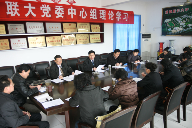 3月12日上午,党委中心组集中学习在办公楼会议室举行。校党委书记万继军主持会议,党委中心组成员参加学习,办公室、组织人事部、宣传统战部、纪监审计处、督查室负责同志及各系支部书记列席会议。