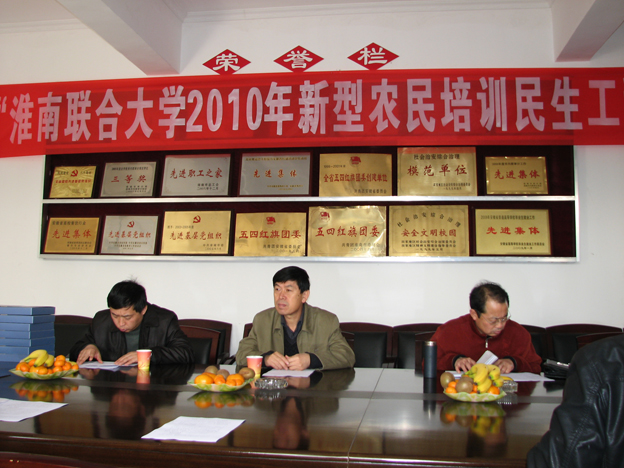 会上,党委书记万继军代表学校对检查组的到来表示欢迎。校长赵耀军概要介绍了我校新型农民培训民生工程工作的基本情况。教务处具体汇报了我校2010年新型农民培训民生工程培训概况、工作措施、存在问题及下一步工作打算。