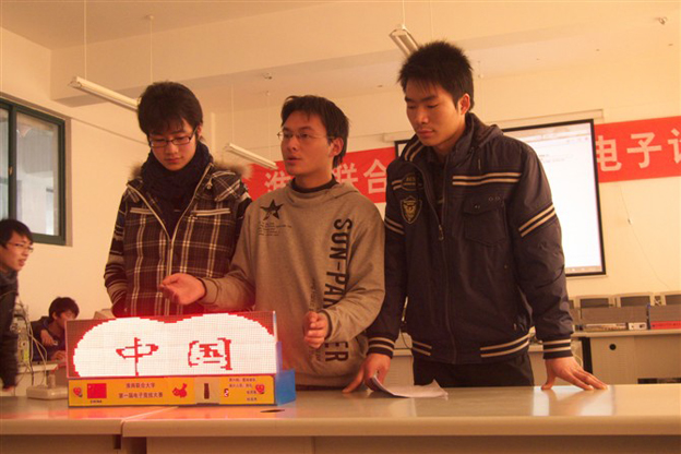 本次大赛受到了校、系领导的高度重视,专业教师对参赛选手进行了全程指导。决赛赛况激烈,第一部分为“智能小车”比赛,主题为“寻宝”;第二部分为“LED显示屏”设计。各参赛选手将自己亲自设计、动手制作的作品一一展示,经过激烈角逐,最后“智能小车”的夺冠者为09电气自动化专业三人参赛组;“LED显示屏”最后由09电信专业名为《终结者》的设计夺得冠军。大赛还评出了二等奖、三等奖若干名。