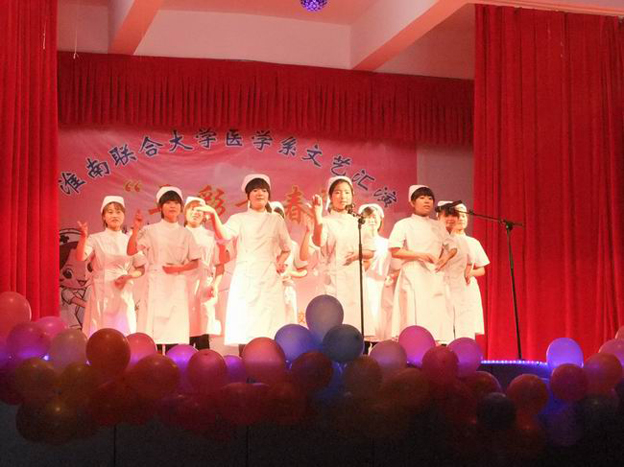 节目在欢乐祥和的乐曲中拉开帷幕,晚会内容精彩纷呈,形式丰富多样。古筝独奏《渔舟唱晚》优美动听;小品《女生宿舍》感人至深,切合实际;京剧《说唱脸谱》受到了老师同学们的喝彩 ;小品《中国加油》更是赢得阵阵掌声和欢笑。安徽红十字朝阳医院的亲情加盟,一首《谁说女子不如男》把现场气氛推到了高潮……晚会在大合唱《明天会更好》的歌声中圆满落下帷幕。