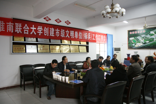 在反馈会上,孙书记和韩主任一致盛赞了淮南联大精神文明建设所取得的成绩,他们指出,淮南联大领导班子高度重视创建工作,创建工作思路清晰、认真扎实,把教书育人工作作为首要工作,把文明创建融入其中,形成了全员参与创建的浓厚氛围;创建载体丰富,贴近高校实际,校园环境优美、整洁,体现出校园浓浓的人文气息;创建工作形成了良好的体制和机制,成为广大师生自觉行动。他们希望联大在以后工作中不断开创新局面、创造新佳绩。