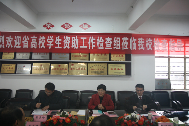12月6日上午,由巢湖学院党委副书记刘华、巢湖学院学生处处长赵尚松、安徽冶金科技职业学院学生处处长欧庆岭组成的安徽省民生工程高校学生资助工作考评组莅临我校,检查考核我校2011年学生资助工作开展情况。
