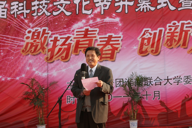 校党委书记万继军宣布淮南联合大学第五届科技文化艺术节开幕。