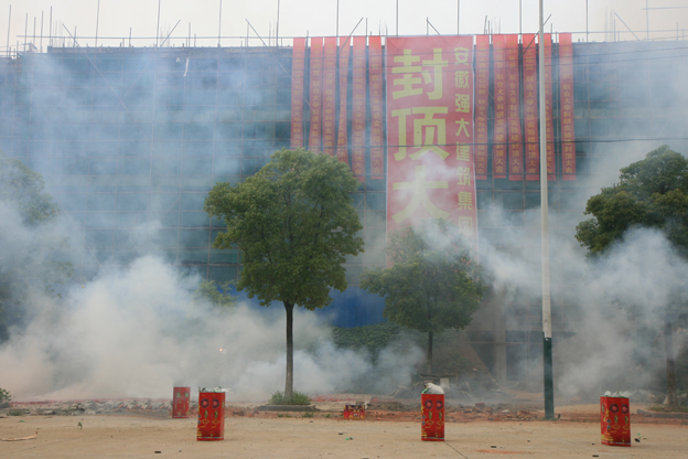 7月28日上午11时18分,随着鞭炮、礼炮齐鸣,我校实训大楼封顶仪式在大楼前正式开始。校党委书记万继军、校长赵耀军、副书记朱亚非、党委委员、组织人事部长白存良以及后勤保障处负责人、建筑公司、监理公司相关负责人参加了封顶仪式。
