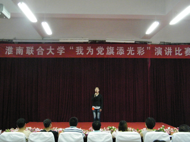 6月24日下午我校“我为党旗添光彩”演讲比赛在220报告厅隆重举行。为庆祝中国共产党成立90周年,讴歌党的丰功伟绩,发扬党的光荣传统,按照党委统一部署,校团委精心组织了主题演讲比赛。来自我校各个系选拔出的8名优秀选手参加了此次比赛。选手们通过结合自身对党的认识,从不同层面和角度表达了对党的热爱和忠诚,讴歌了身边的先进党组织和优秀共产党员。