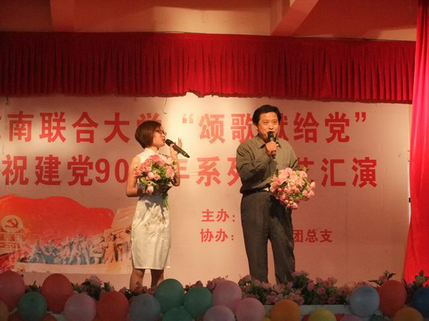 为了隆重庆祝建党九十周年,响应我校开展“红五月”活动的号召,医学系于5月13日下午在食堂三楼大学生演艺厅成功举办了“颂歌献给党”文艺演出。校党委书记万继军,校长赵耀军,校党委副书记朱亚非、副校长尚文及有关处室、兄弟系部领导观看了演出。