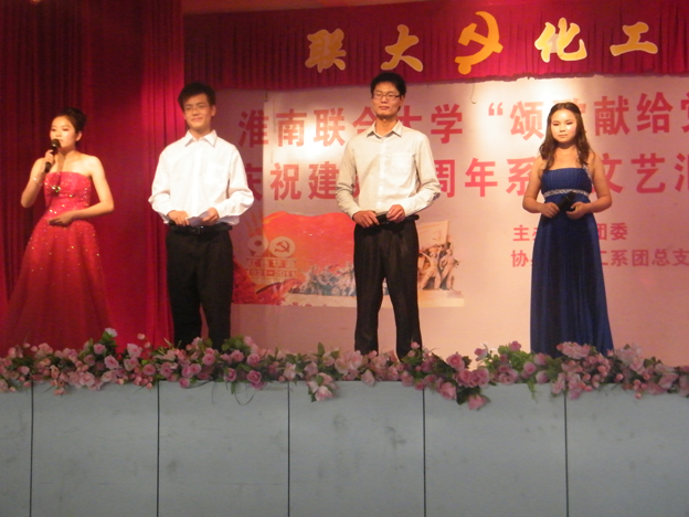 本次活动是化工系为庆祝建党九十周年精心筹划的一场大型文艺演出,演员们以红色歌曲、民族舞蹈、相声、朗诵等形式抒发了对党的热爱和对祖国欣欣向荣的大好形势的歌颂和赞美。其中吴月等人的配乐诗朗诵《那一年》,为我们再一次的描述了08年年初的雨雪冰冻灾害到汶川“5.12”地震中中华民族所表现出的顽强不屈、众志成城、民族大爱。他们高亢的、富有激情和发自心底的呐喊感动了在场的每一位观众,把整场演出推向了高潮。让我们又一次的接受了爱国主义的洗礼。