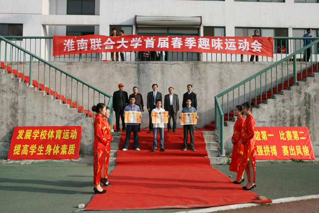 校长赵耀军致闭幕词。他首先代表学校党委、行政向在本届运动会上团结协作、顽强拼搏、取得优异成绩的运动员本人和集体表示热烈的祝贺!向为本届运动会付出辛勤劳动的广大裁判员和工作人员表示衷心的感谢!在本届比赛中,广大裁判员公正、公平、有条不紊、严谨认真地开展工作,充分体现了体育运动的基本精神和原则。广大工作人员各司其职、兢兢业业、踏实工作,为本次比赛的成功举行提供了强有力的保障。广大运动员充分发扬敢于挑战、沉着冷静、尊重裁判、积极踊跃的运动精神,更体现出了联大学子良好的精神风貌。通过全体师生的共同努力,本届运动会取得了比赛成绩和体育道德风尚的双丰收!赵校长指出,本届趣味运动会取得的成绩是全方位的,希望全校师生把在这次运动会中所体现出来的积极进取、团结协作、开拓创新的精神带到今后的学习、工作中去,以饱满的热情、昂扬的斗志、拼搏的精神,创造淮南联大更加辉煌的明天!