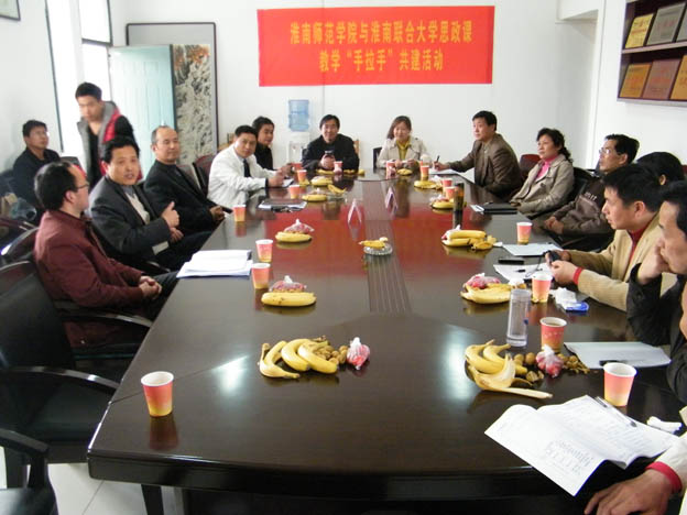为贯彻落实《关于实施高等学校思想政治理论课建设工程的意见》(皖教工委〔2010〕22号)、《关于做好高等学校思想政治理论课建设工程2011年实施工作的通知》(皖教工委〔2011〕7号)文件精神,进一步推进淮南同城高校思想政治理论课教学“手拉手”共建基地建设,4月12日下午,淮南联合大学与淮南师范学院举行思想政治理论课教学“手拉手”共建活动。