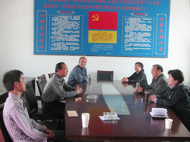 调研组先后到达颍上县三十铺镇仁和村、阜南县段郢乡八里村、望江县鸦滩镇望马楼村,乡村两级组织的有关负责人陪同调研组实地查看了选聘生的生活和工作情况。三个乡镇及村组织负责同志对调研组表示热烈欢迎,分别介绍了各自乡镇、村的经济和社会发展情况,以及我校江越、杨从亮、金雪明三名大学生村官任职以来的工作表现。认为三名大学生村官能很快适应农村环境快,对农村很有感情,能迅速投入到村、乡的各项事务中,并能结合所学知识为乡村的组织建设和经济发展献计献策。特别是江越所任职的村充分利用当地盛产山芋,重点发展山芋制作粉丝、淀粉等产品,眼下正在依托该村的天丰食品有限公司申报颍上县农业产业化龙头企业,江越给予村里发展项目提出了不少好的意见。金雪明谈了任职以来的工作情况和心得体会,表示在乡党委政府和村领导的支持下,自己得到了很好的锻炼,跟农民产生了很深厚的感情。虽然取得了些成绩,但认为农村工作条件仍然比较艰苦,发展的担子依然艰巨,还需要不断向乡村干部学习请教。