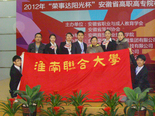 2012年“荣事达阳光杯”安徽省高职高专院校营销策划联赛在芜湖市举行。大赛包括营销策划文案撰写、营销策划方案PPT陈述和答辩,营销技能现场促销模拟展示,电话调研和营销策划专业知识竞赛四个赛项,着重考察参赛选手的营销策划能力、创新、团队精神等职业素质以及实际营销活动操作能力,经过两天紧张激烈的角逐,经济系夏秋艳、王芹、陶醉、谢先锋、肖纯、涂家伟等六位同学组成的淮南联合大学代表队荣获大赛二等奖,为我校争得荣誉,再添辉煌。