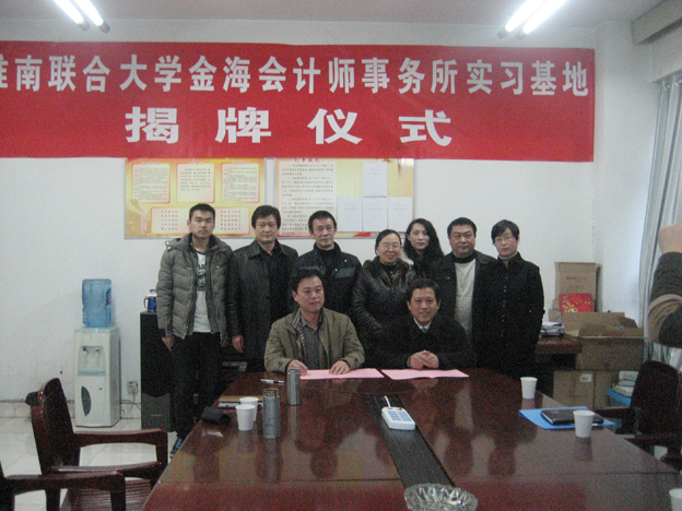 11月29日下午,淮南联合大学经济系与金海会计事务所实习基地协议签署及揭牌仪式在市金海大厦举行。校长赵耀军与会计事务所所长出席,党政办、经济系负责人以及骨干教师参加了揭牌仪式。
