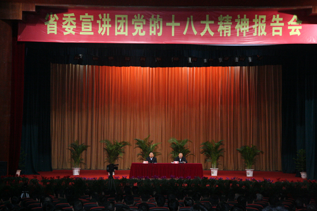 12月4日上午,省委宣讲团党的十八大精神报告会在淮南煤矿大礼堂隆重举行。校长赵耀军率我校师生代表40余人参加了会议并聆听了报告。省委宣讲团成员、省发展和改革委员会主任张韶春为参会人员作了一场精彩的宣讲报告。