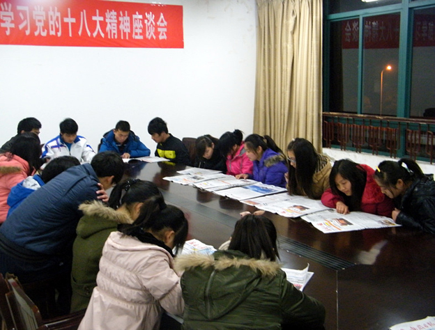 通过交流座谈、讨论,大家进一步加深对十八大精神的认识与领会,进一步提高宣传贯彻十八大精神的自觉性,进一步明确用十八大精神指导自身学习发展的奋斗目标。会后,大家纷纷表示要将十八大精神与实践相结合,真正肩负起当代青年的使命和责任,为构建和谐富强社会做贡献。