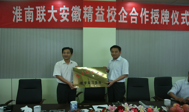 揭牌仪式上,精益公司领导对校领导一行的光临表示热烈欢迎,对在公司实习的我校建工系学生的工作表现给予充分肯定,并向大家介绍了公司发展历程、企业文化、品牌打造、施工项目等。校长赵耀军代表校方在合作协议上签字,党委书记万继军与公司总经理常益为校企合作共建基地揭牌。