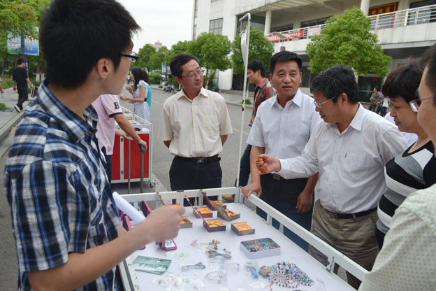 在常州纺织职业技术学院参观交流期间,院长冯国平、党委副书记黄卫平、副院长贺仰东等出席了交流会。在交流会上,冯院长对万书记一行的到来表示欢迎,就学院创业教育的发展历程进行了介绍。万书记一行先后参观了创意学院的掐丝画工作室和雕塑工作室、常纺加减创业教育中心、创业教育实验园、百草根商贸集市,还分别与创业实践的学生和老师进行了交流。