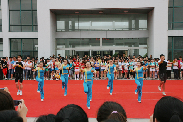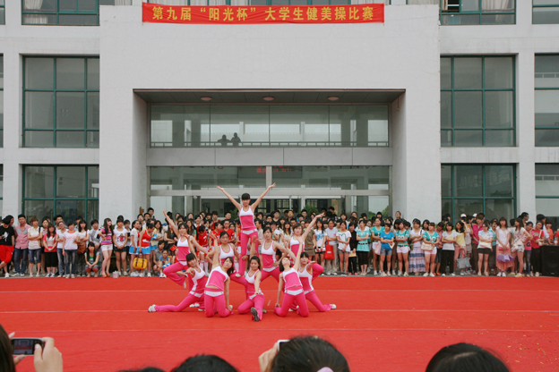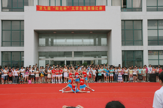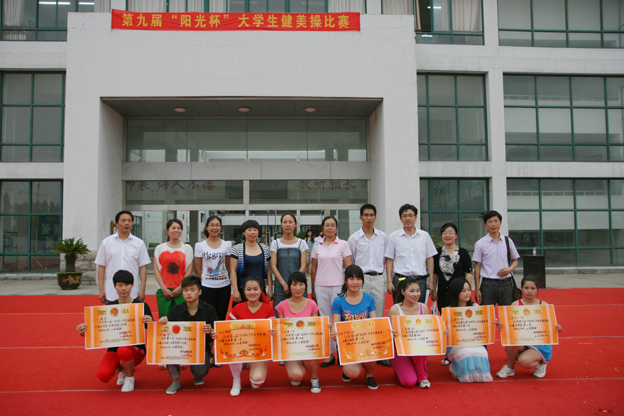 5月19日下午,我校举行了第九届“阳光杯”大学生健美操比赛,共有32个班级、300多名学生参加了本次比赛;为了保证比赛的公平性和公正性,组委会从淮南师范学院聘请了四位健美操国家一级、二级裁判员担任本次比赛的裁判工作。下午3点半比赛正式开始,经过了近三个小时的激烈争夺,最终11级药品营销班获得比赛一等奖,11级护理6班、11级会计1班荣获二等奖,11级护理2班、11级护理3班和11级造价1班取得三等奖。