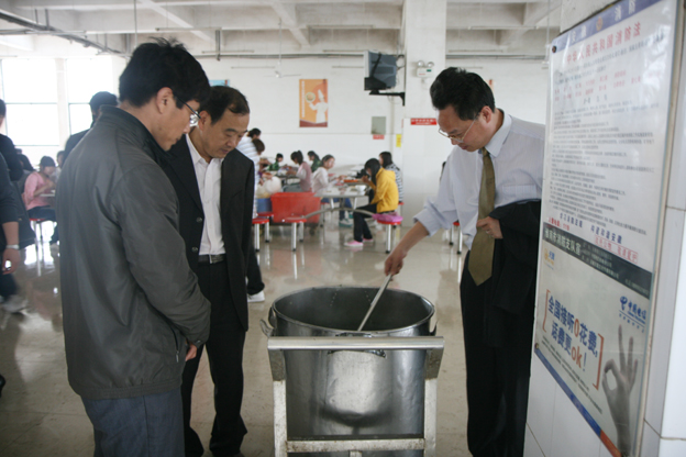 会后,朱书记带领大家对食堂的安全、卫生、饭菜质量等情况进行了检查,为学生饮食安全构筑安全保障。
