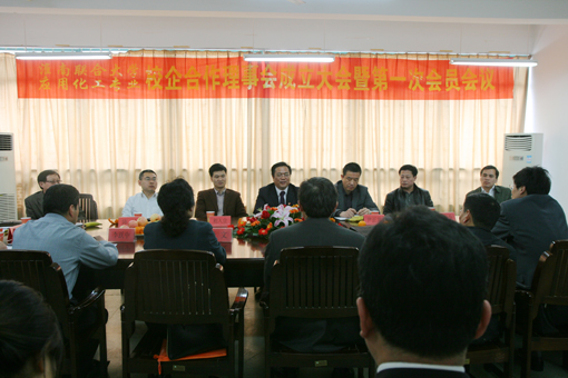 4月14日上午10点,化工系应用化工技术专业校企合作理事会成立大会暨第一次会员会议在西区教师休息室隆重召开。校长赵耀军,副校长尚文,党委委员组织人事部部长白存良,安徽淮化集团有限公司董事长谢绍颖,安徽德邦化工有限公司总经理相入宣,安徽山河药辅有限公司董事长尹正龙,安徽淮河化工股份有限公司副总经理王雪礼,淮南舜岳水泥有限公司副总经理王天全,安徽淮化集团有限公司副总经理陈林,安徽淮河化工股份有限公司研究所所长王俊华,安徽德邦化工有限公司副经理杨启明,教务处负责人,化工系项目组负责人及全体成员参加了会议,会议由化工系党总支书记主持。