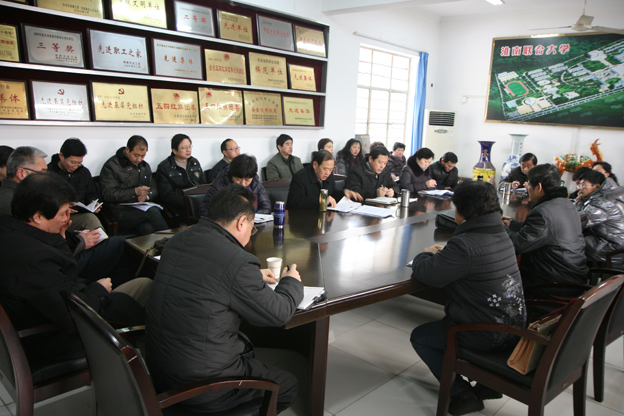 赵校长分别从教学教务、安全工作、年度评优考核、两代会筹备、“十二五”规划专项行动计划的年度工作计划制定、教学改革、安全保卫、后勤基建、电大招生等方面就新学期各项工作进行了周密的安排和工作布置。并就2012年党政工作要点的内容向全体与会人员进行了阐述。他指出,提升内涵,加快发展,奋力实施“十二五”规划与各项行动计划的年度计划,学习贯彻十八大重要会议精神是2012年党政工作要点的重中之重。他希望全体中层干部要凝心聚力扎实做好新一年的工作筹划,理清思路、奋力拼搏,全面推进学校各项工作再上新台阶。