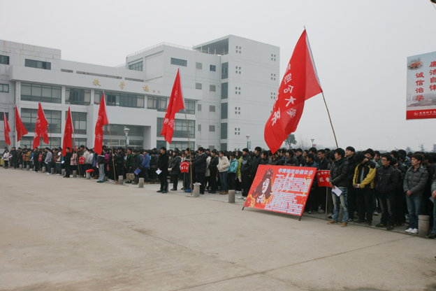 他强调,弘扬雷锋精神,我们就要像雷锋那样全心全意为人民服务,大张旗鼓做好人做好事,为构建和谐校园作贡献;弘扬雷锋精神,就要像雷锋那样胸怀共产主义远大理想,坚定中国特色社会主义信念,无限热爱祖国,为全面建设小康社会做贡献;弘扬雷锋精神,就要像雷锋那样立足本职,忠于职守,做一颗永不生锈的螺丝钉。我们要进一步深化岗位学雷锋活动,把广大师生员工学雷锋的积极性引导到立足本职工作和学习上,坚持岗位奉献上来,使雷锋精神扎根于我们的每一个平凡岗位上。