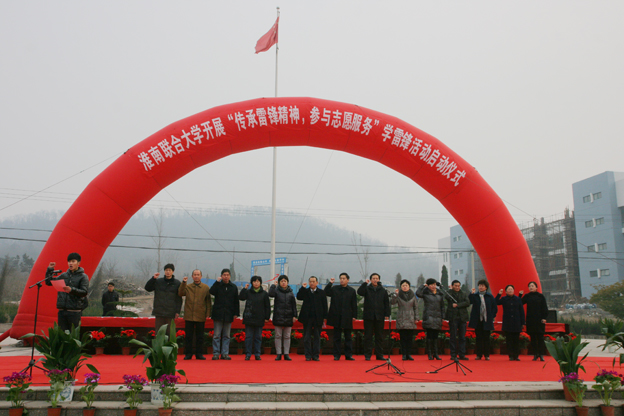 3月5日下午,淮南联合大学国旗广场,红旗招展,人声沸扬。全体师生聚集于此举行“传承雷锋精神,参与志愿服务”学雷锋活动月启动仪式。校党委书记万继军,校长赵耀军,副校长尚文,纪委书记白玫,党委委员、组织人事部部长白存良出席,启动仪式由党委副书记朱亚非主持。