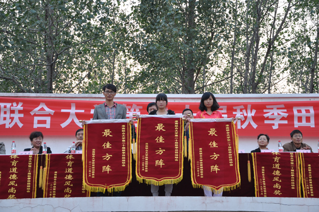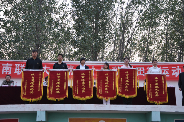 闭幕式上,校运动会总裁判长宣布了开幕式最佳方阵名单、团体比赛获奖单位名单和荣获体育道德风尚奖代表队名单。校领导为本届运动会上获奖集体和个人进行了颁奖。