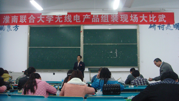 11月9日下午,由校团委社团联合会主办的淮南联合大学无线电产品组装现场大比武在东区122举行。本次大比武由淮南市田家庵区科协主席胡斌担任评委。