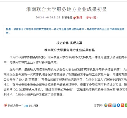 服务地方企业、服务地方产业结构转型升级已经成为淮南联合大学与其合作企业服务共赢,合作培养高技能人才的活力源泉!