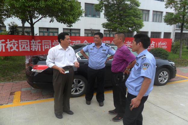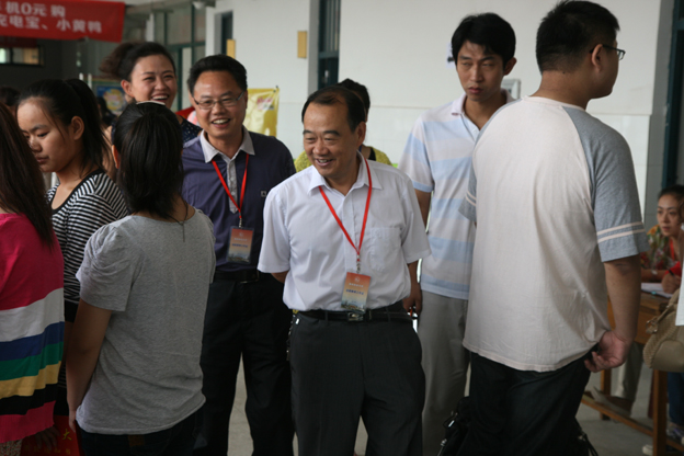 校长赵耀军与迎新工作人员交谈