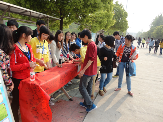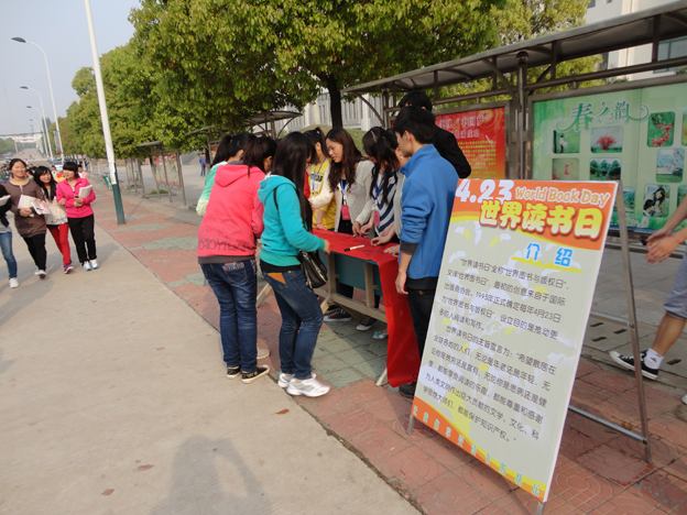 通过在博学路展开“读书---怡情,明德,博学”为主题的世界读书日签名活动,吸引了全校同学积极主动参与,同学们纷纷签名,参观宣传展板,并表达了读书的一些感想,现场气氛十分热烈。