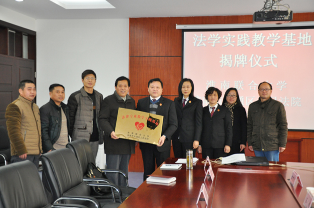 校长赵耀军介绍了我校法律专业的基本情况,并结合党的十八届四中全会提出的依法治国,加强法律职业队伍建设的精神,阐述了法律教育的重要性及加强法律实践教学、构建高校与地方司法机关共建实践教学平台的必要性。赵校长指出,法律实践教学基地的建立,有利于促进学校与法院的深度合作和交流,双方优势互补,相互有利。该实践基地的建立和有效运行,对于提高我校法律专业人才培养质量将会发挥重要作用。