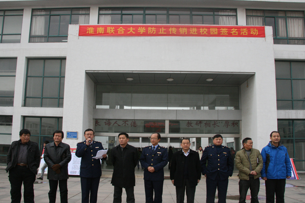 上午10时,“拒绝传销 共建和谐”签名活动在校国旗广场顺利举行,广大师生踊跃参加,积极签名,坚决抵制传销进校园。下午邀请到市公安局国保支队周涛大队长在报告厅为广大师生进行了一场防传销专题讲座。周队长详细讲解了传销的定义、特点、传销行为的新手段以及国家打击传销行为的法律法规,同时利用生动的案例剖析了传销的危害性,并介绍了大学生应如何抵制传销的具体方法。
