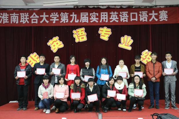 12月12日下午由外语系主办的淮南联合大学第九届实用英语口语大赛(非英语专业组)决赛在西220报告厅圆满结束。比赛邀请校内优秀的外语专家担任评委,全校各系部主任及外语系党总支书记应邀出席指导,外语系全体学生及我系部分公外学生观看了比赛。