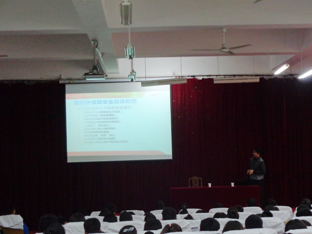12月4日下午,我校特邀请网神信息(北京)股份有限公司网络安全工程师李宁先生在西教学楼报告厅为我校师生举办“网络安全精彩一课”网络安全讲座。