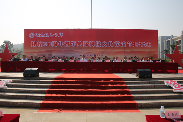 三十年风雨兼程,三十年春华秋实。10月26日,校园里红旗招展、弦乐阵阵,处处洋溢着欢乐和喜庆的气氛,庆祝建校三十周年暨第八届科技文化艺术节开幕式在国旗广场隆重举行。