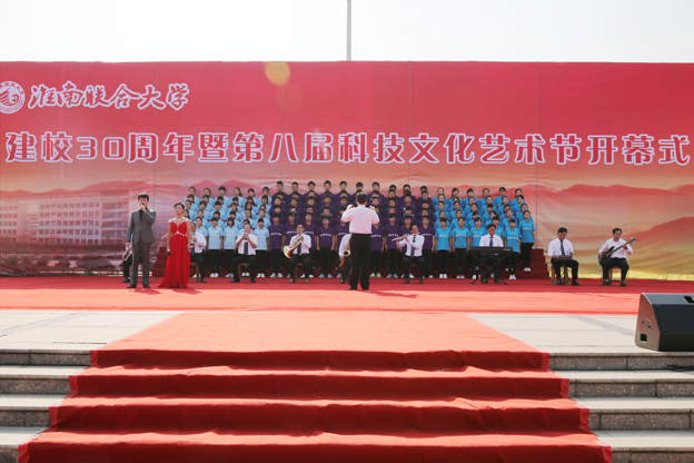 开幕式由党委书记万继军主持,校长赵耀军致欢迎词。赵耀军代表学校向各位领导、来宾和广大校友表示热烈的欢迎,向多年来为联大建设、改革和发展做出贡献的离退休老同志致以崇高的敬意,向所有关心、支持和帮助我校事业发展的各界朋友表示衷心的感谢。他向大家介绍了学校三十年来的发展历程和办学特色以及取得的办学成就。他表示,学校将以此次校庆为新的起点,向新的目标前进,为淮南市产业结构转型升级培养出更多高素质高等实用型技能人才。全国职业教育工作会议吹响了加快发展现代职业教育的号角,全校师生员工将继续发扬光大“艰苦奋斗、严谨治学、务实创新、励志图强”的联大精神,继往开来,与时俱进,奋发进取,努力为服务淮南、服务区域发展作出新的更大贡献!