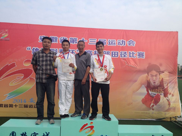 在10月11日和12日的安徽省第十三届运动会中,我校13级报关班沈玉婷和13护理3班郑佳佳同学分获乙组(高职高专组)女子5000米竞走冠亚军;13级建工4班陈人丞和13级市场营销董鹏程同学分获男子撑杆跳高冠亚军,并打破校记录,为我校再添2枚金牌,2枚银牌。