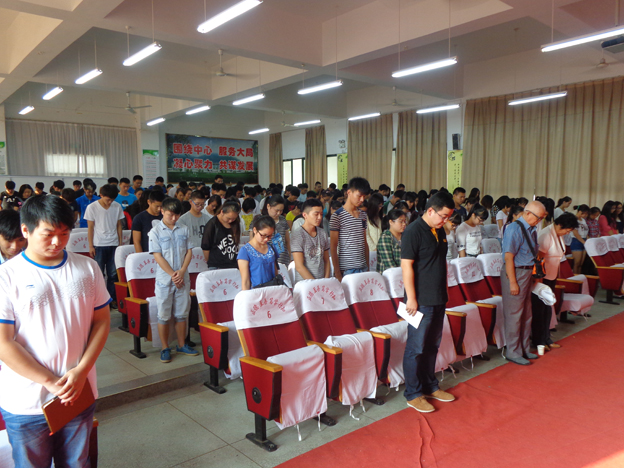在宣讲开始之前,师生们为抗日战争牺牲的英勇烈士们进行了默哀。本次宣讲会邀请到关工委的卢凡爱老师,他为广大师生做了一场别开生面的报告。他在宣讲中指出,抗日战争胜利纪念日是为了铭记中国人民反抗日本帝国主义侵略的艰苦卓绝的斗争,缅怀英烈以及为抗日战争胜利作出贡献的人们,表明中国人民维护国家主权、领土完整的坚定立场,弘扬以爱国主义为核心的民族精神。希望广大青年要牢记历史,勿忘国耻,好好学习,坚定信念,从小事做起,树立远大目标,传递正能量。精彩的宣讲打动了在场的每一位同学,让同学们对抗日战争的历史有了更深刻的了解,深知和平的不易,会场响起阵阵热烈的掌声。