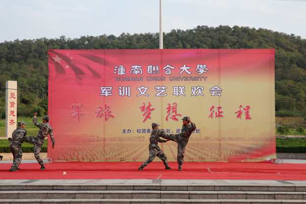 为弘扬学生团结向上,敢于拼搏的精神,搭建展示与训练自我的舞台。9月22日下午,我校在国旗广场举办以“军旅·梦想·征程”为主题的军训文艺联欢会。出席活动的领导有陆军军官学院赵百林参谋,党委书记万继军,校长赵耀军,党委副书记朱亚非,副校长尚文,纪委书记白玫,党委委员、组织人事部部长白存良。学校各职能部门、各系部负责同志与全体师生共同观看了演出。
