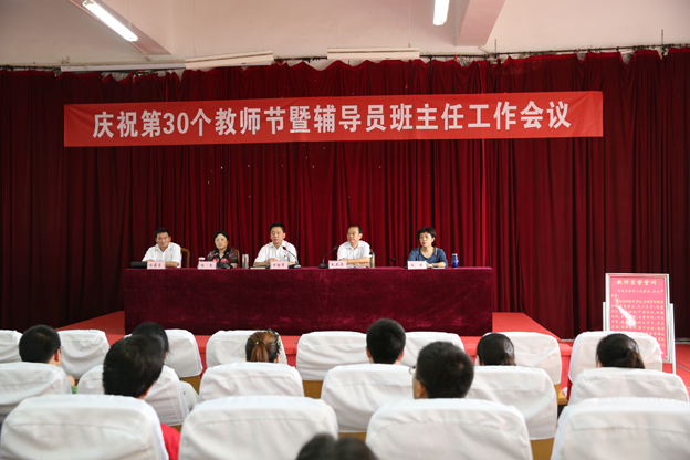 在第30个教师节来临之际,万继军首先代表学校党委向全校教职员工致以真诚的节日问候。他指出,学生工作同学校的教育、管理、服务等各项工作交织在一起,密不可分,做好学生工作意义重大。辅导员、班主任工作是学校学生工作的基层堡垒,多年来他们在各自的岗位上教书育人,默默奉献,为学校的发展做出了很大贡献。并提出三点要求,一是爱校;二是爱生;三是爱岗。他结合我校30年办学历史中体现出的自强不息的精神,激励辅导员、班主任更加热爱本职工作,不辱使命,全身心地投入到学生工作中去,把工作做得再细致,服务做得更周到。