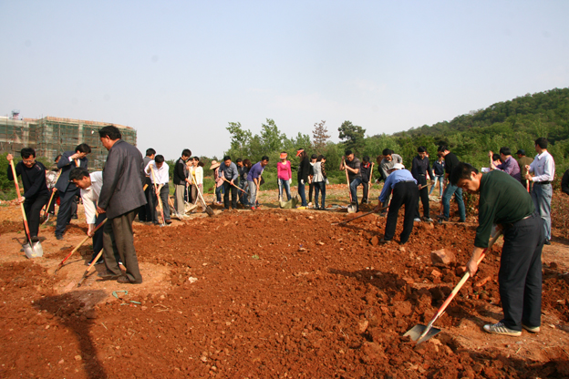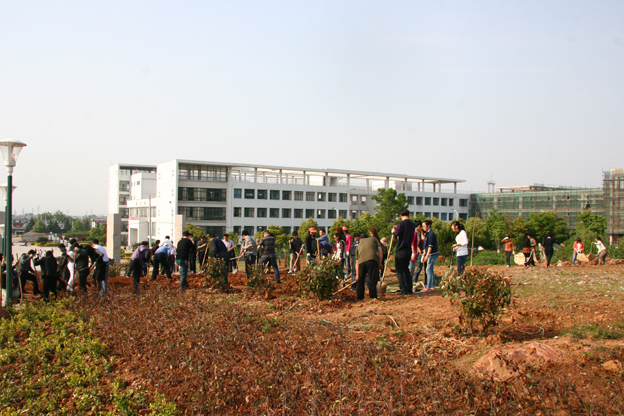 校领导带领全体行政坐班人员在国旗广场南侧进行义务劳动。大家分工明确,相互协作,对绿化带进行了平整、清理,用实际行动